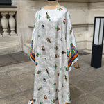 ⚠️ En raison de sa couleur claire, le tissu peut être légèrement transparent. Il est donc recommandé de porter une sous-robe en dessous.