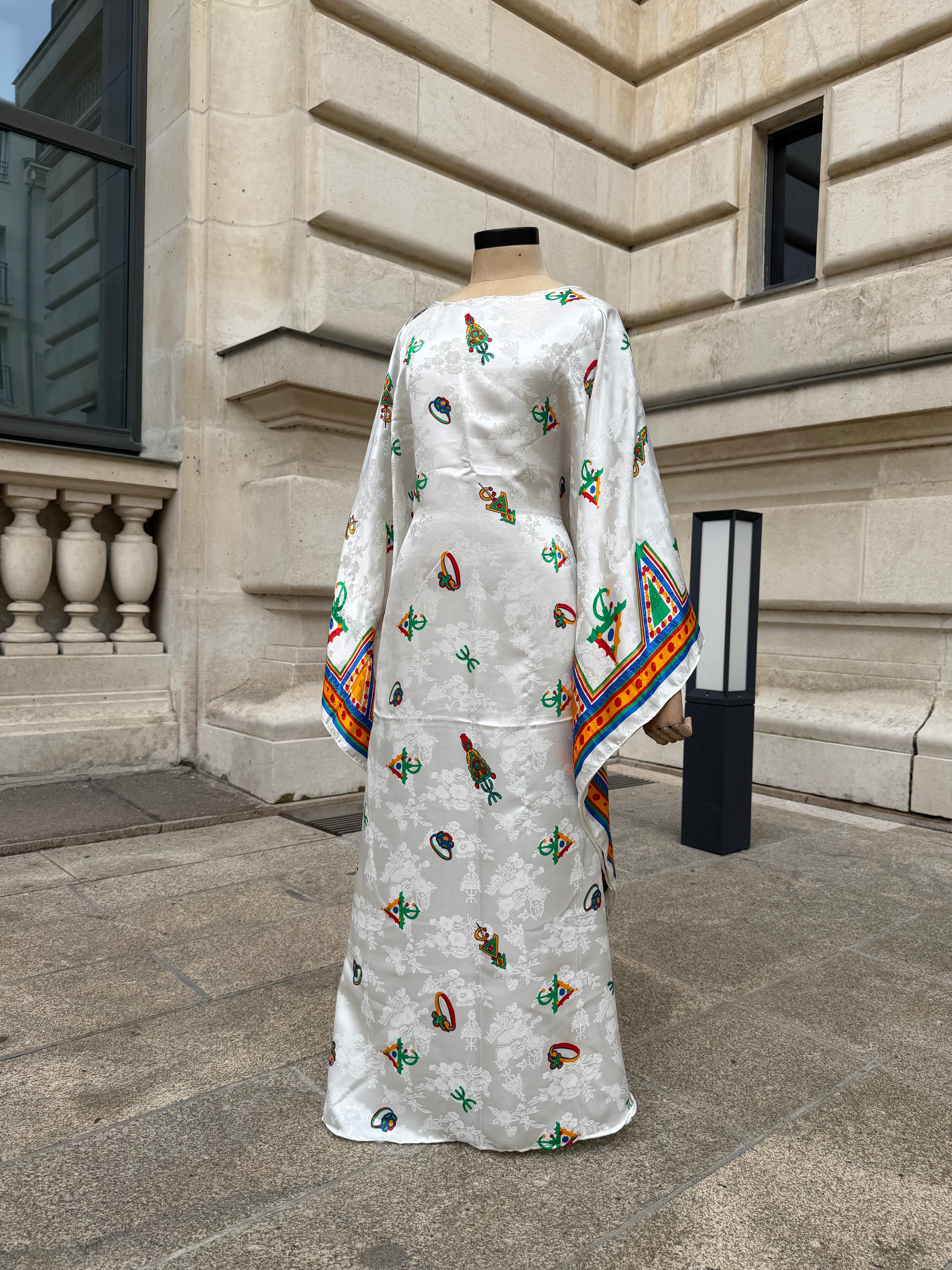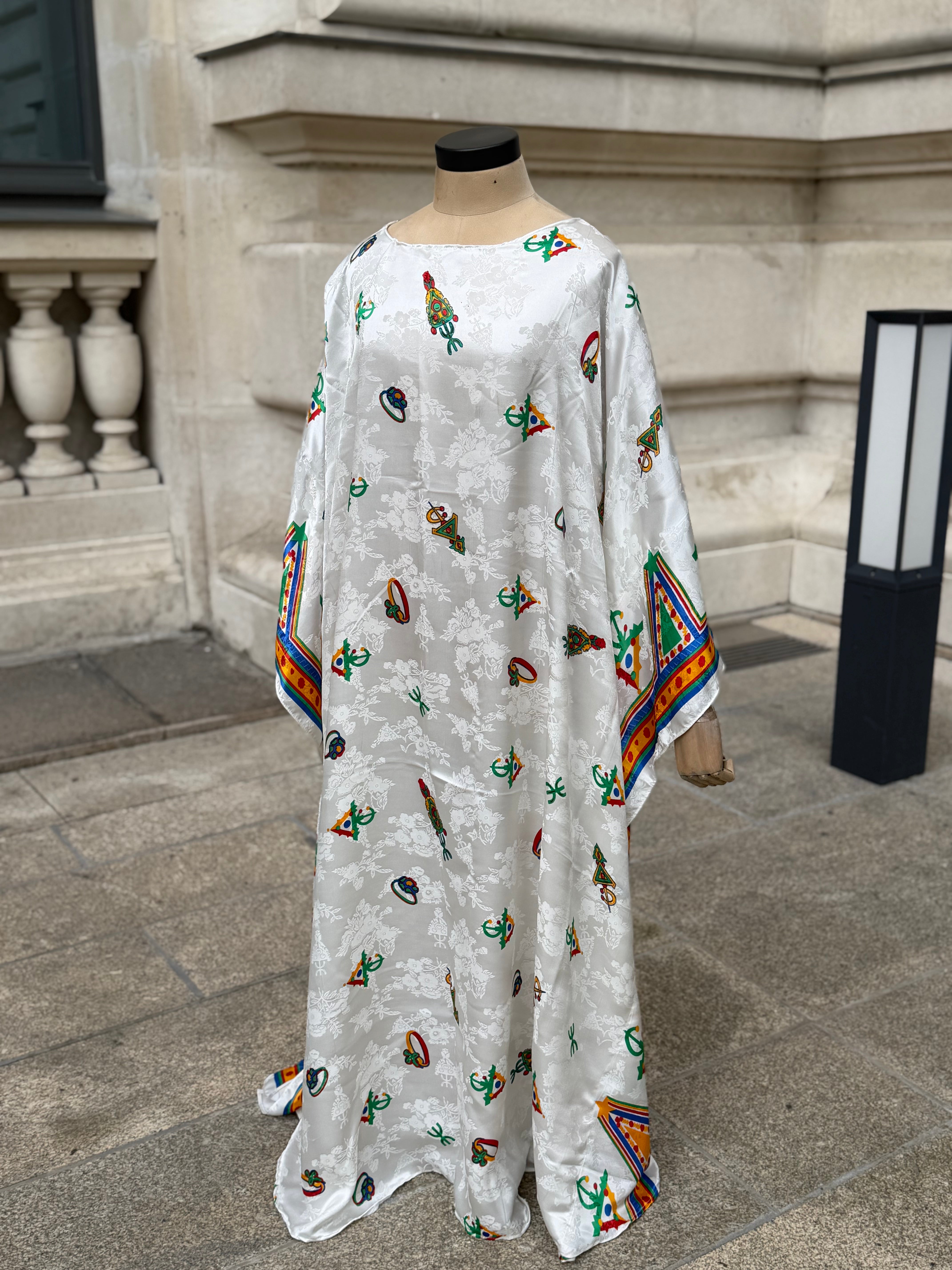 Réalisée dans un satin fluide, la robe Tafsut se distingue par sa coupe très large type saoudienne, offrant un maximum de confort tout en restant élégante.